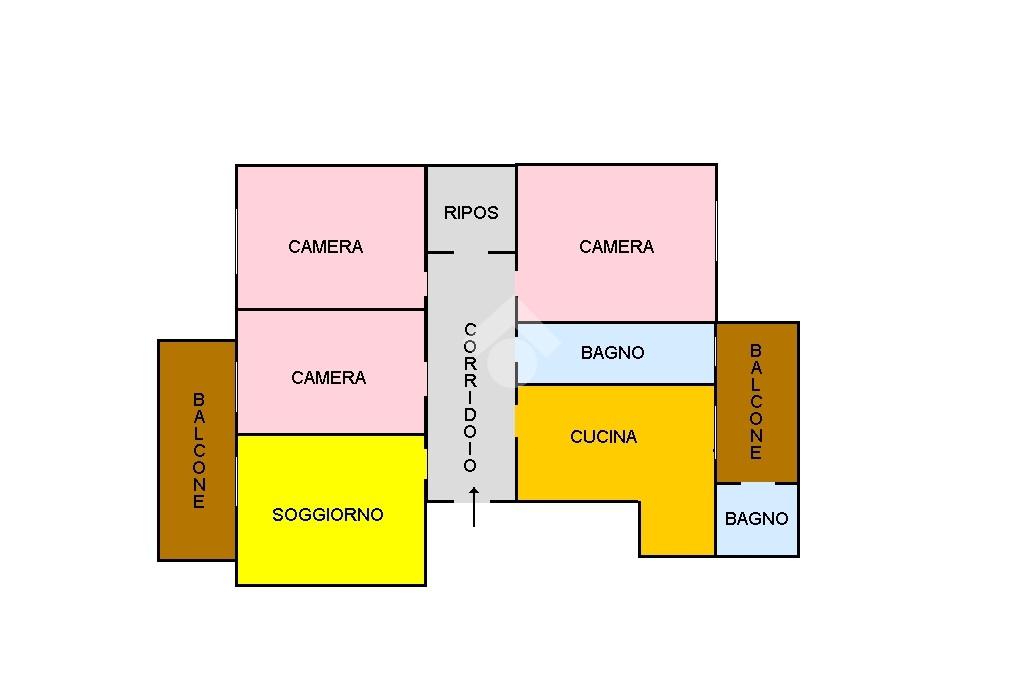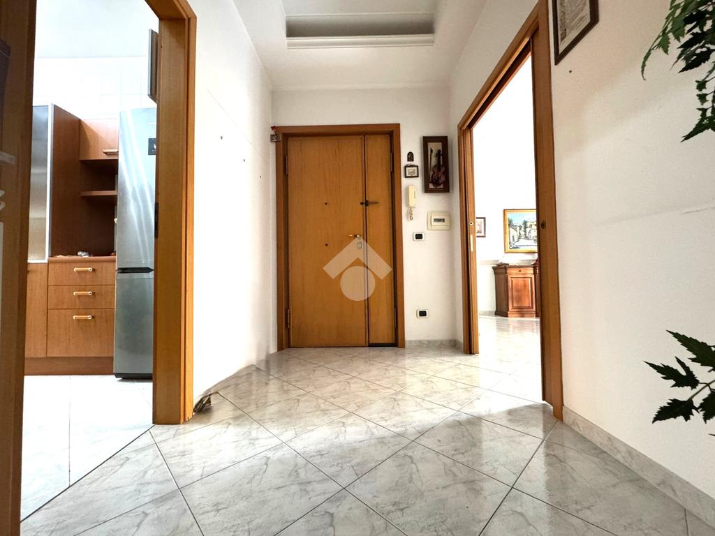 L'appartamento, situato al primo piano alto, è così suddiviso: Ingresso. ampio corridoio, soggiorno, due camere da letto matrimoniali, cameretta, ripostiglio, cucina abitabile e due bagni.